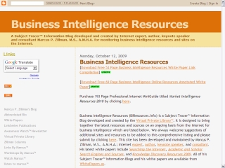 I have just updated my annotated white paper titled Business Intelligence Online Resources and it is now a 69 page (1.71MB) freely available .pdf document available from the above URL. Also the associated white paper link compilation titled Business Intelligence Resources is available from my Subject Tracer titled Business Intelligence Resources and available by clicking here.